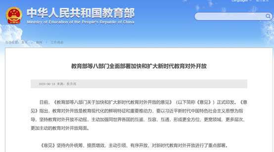 中國政府已經(jīng)表示要加強新時期的教育對外開放戰(zhàn)略決心不變、格局不變(教育部已經(jīng)出臺文件);
