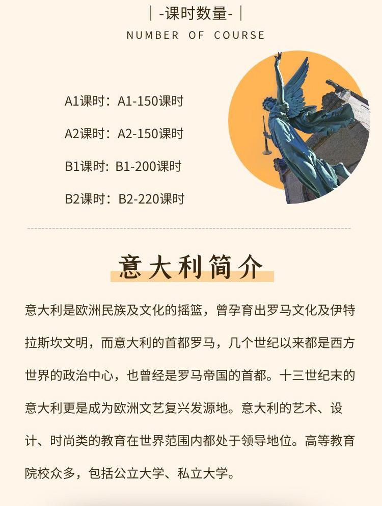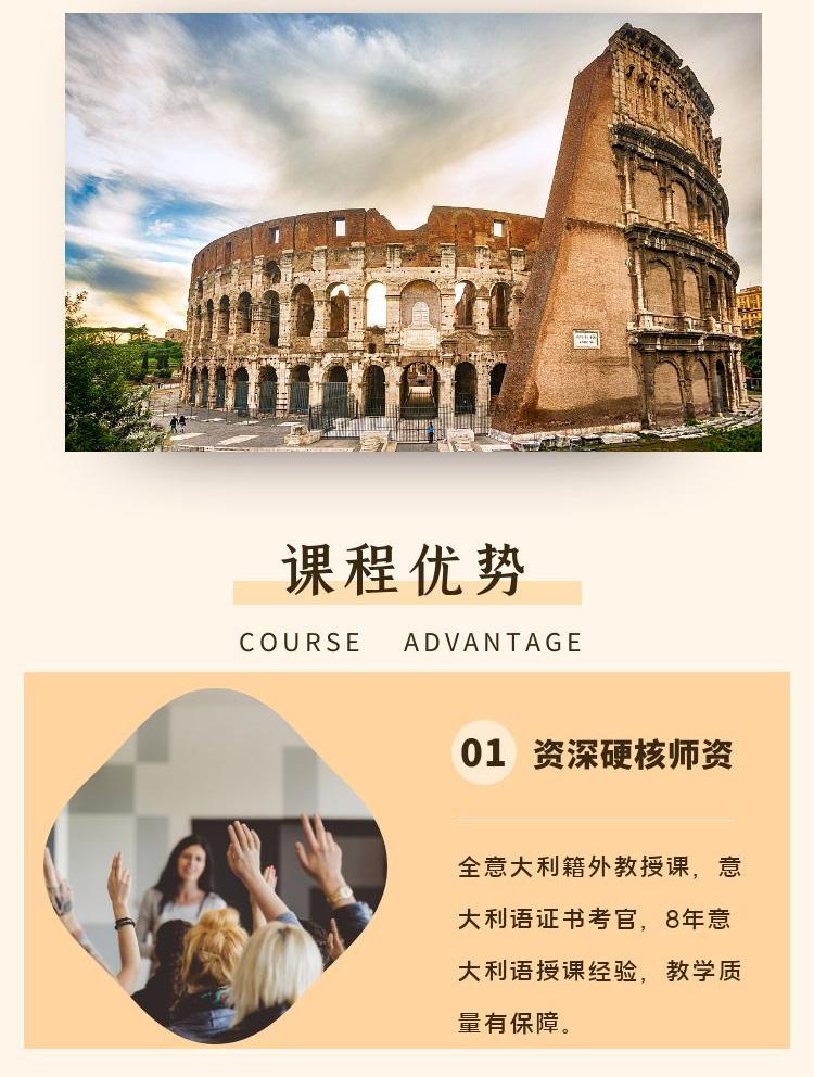 課程優勢:全外教意大利籍外教,意大利語證書考官,教學質量有保障;