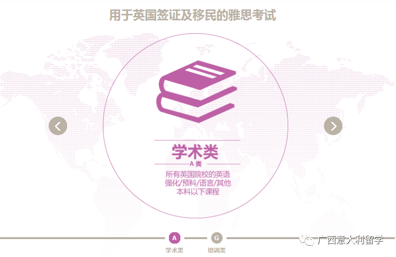 IELTS G類:適用于移民或工作用途,比如打算去英國(guó)參加工作、接受培訓(xùn)、非文憑類課程的移民或者其他非學(xué)術(shù)目的。