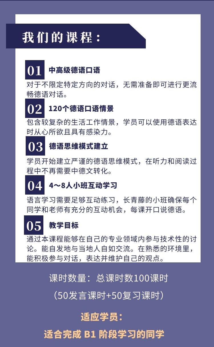 德語中高級1 總課時數100課時(50發言課時+50復習課時)