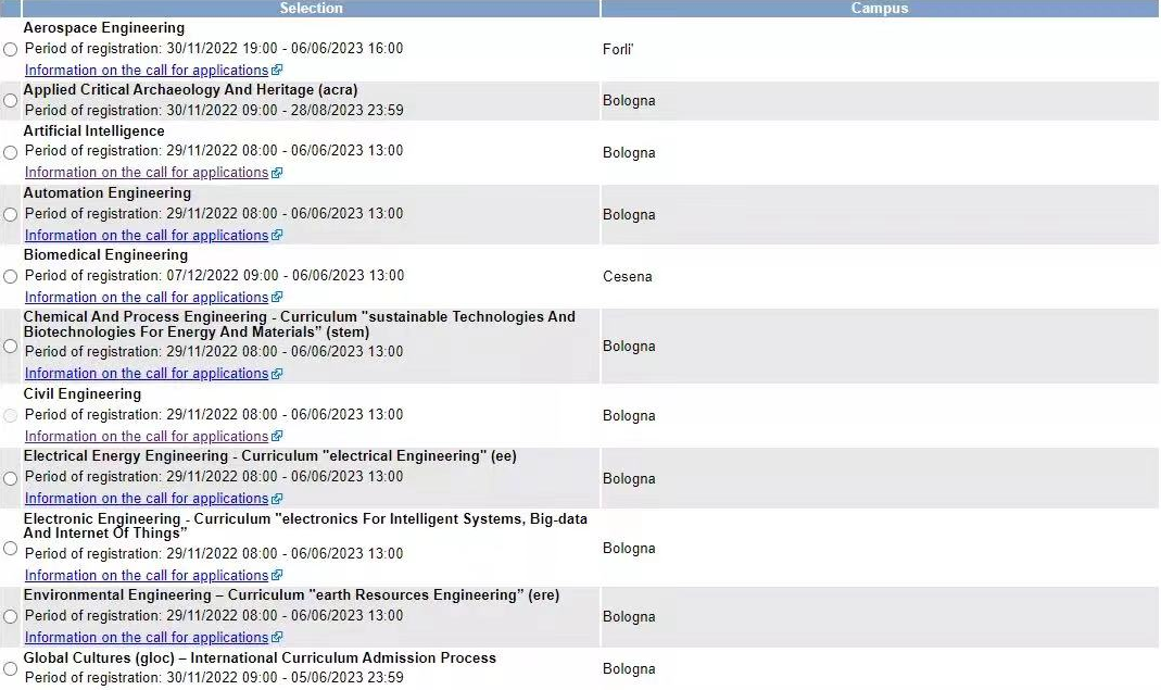 博洛尼亞大學(xué)目前開放網(wǎng)申的專業(yè)于2023年6月5~6日截止。