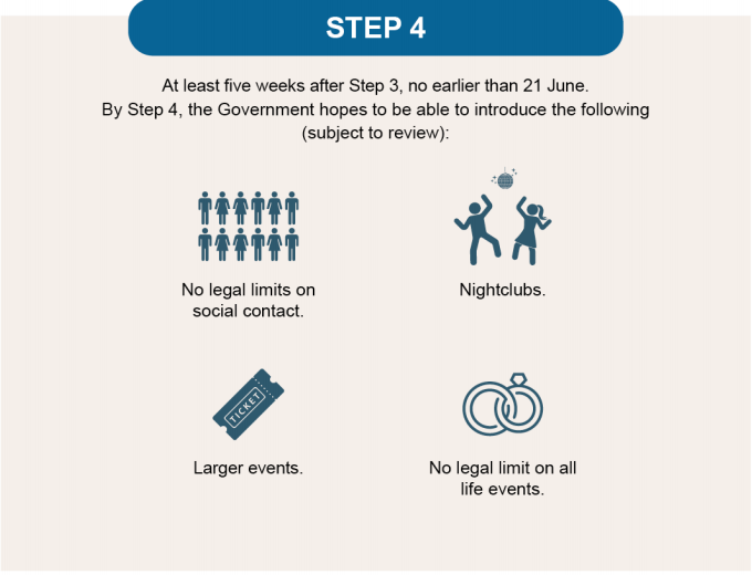 值得注意的是,這一步被認為解封的關鍵,因為人群開始聚集,帶來病毒傳播風險。不過好消息是,按照計劃,這個時候英國政府已經完成絕大部分50歲以上的脆弱人群接種了疫苗。