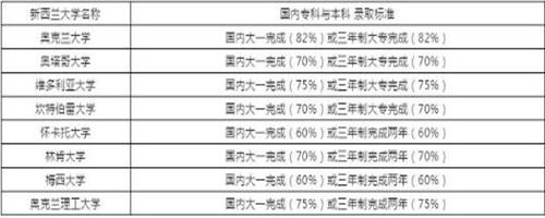現階段,除了奧克蘭大學不知道高考成績要求外,申請新西蘭的高考生的高考成績必須要達到各地一本線的錄取標準,其中坎特伯雷大學是取一本高分線,林肯大學取高考分數線總分的70%,具體可參考下面院校: