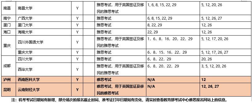 · 云南財經大學考點新增9月26日和27日雅思和用于英國簽證及移民的雅思(IELTS for UKVI)紙筆考試